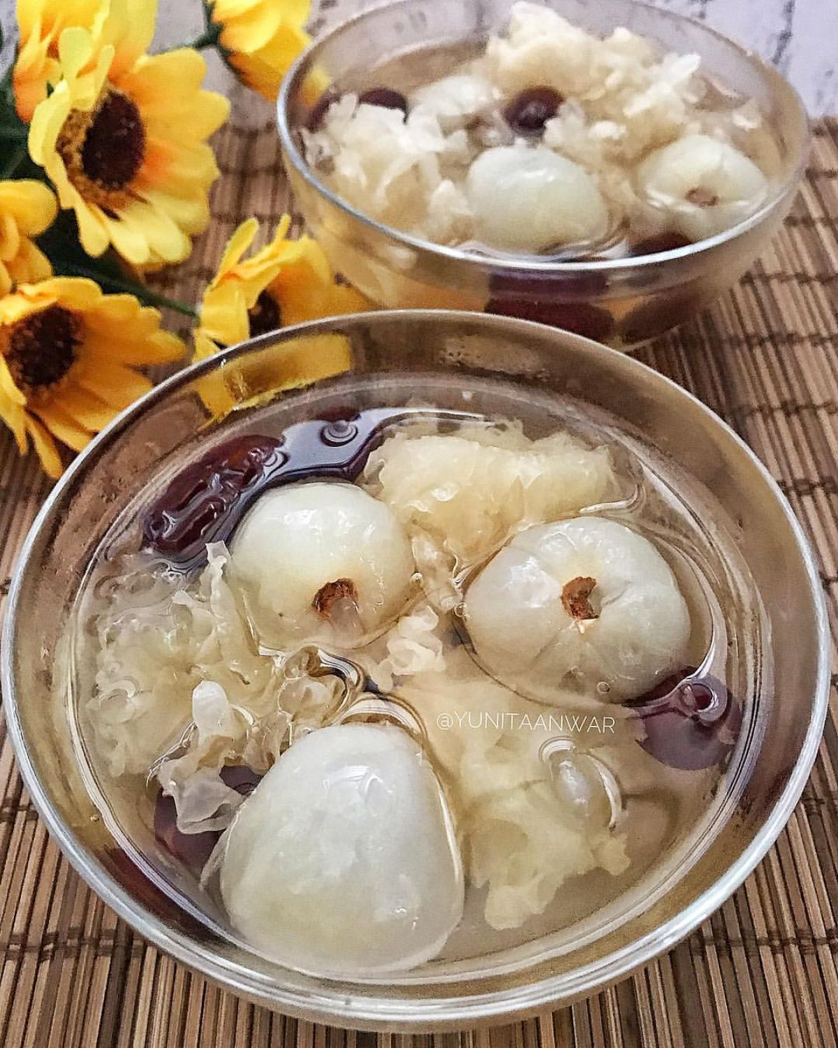Siang teman-teman! Hari ini kita akan membuat minuman sehat yang menyejukkan dan lezat. Ini adalah resep yang sederhana namun bermanfaat. Minuman ini menggunakan bahan-bahan seperti white fungus, angco, dan lychee yang kaya akan manfaat kesehatan. Yuk, langsung kita mulai!