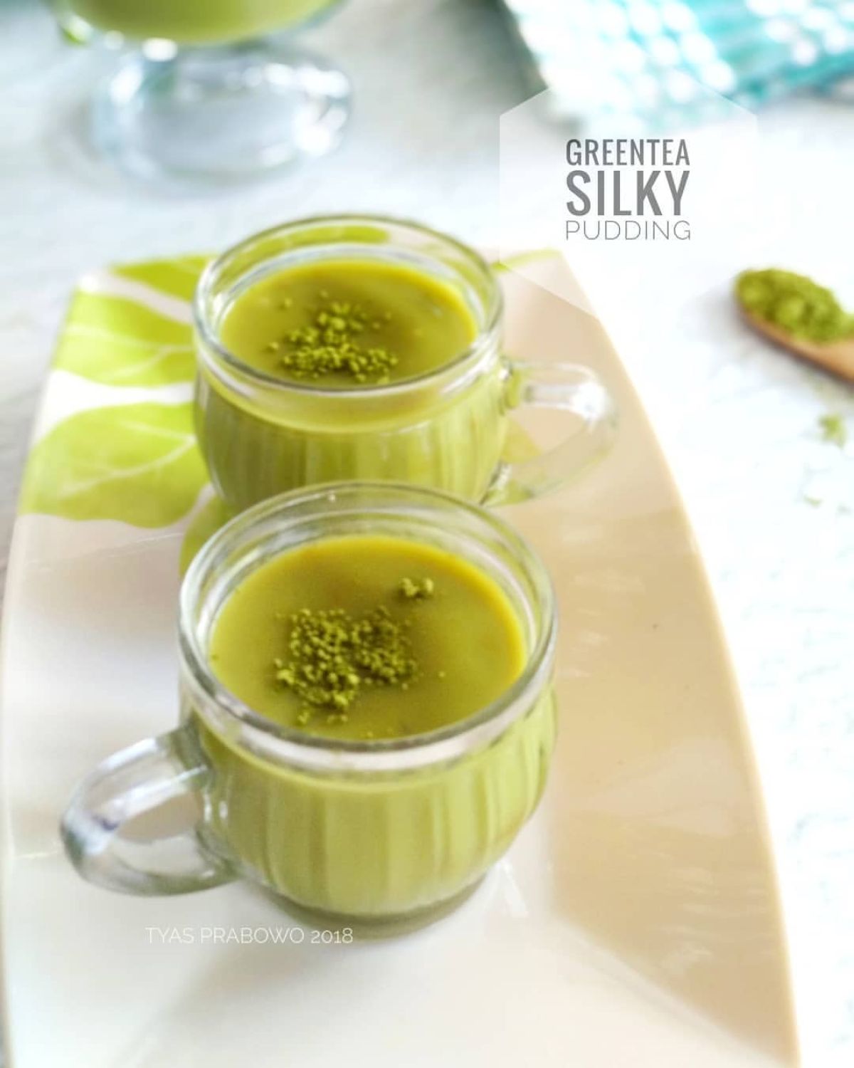 Greentea Silky Pudding adalah salah satu dessert yang populer di Jepang dan kini sudah terkenal di berbagai belahan dunia. Pudding ini dikenal karena rasanya yang lembut dan aroma teh hijau yang khas. Teh hijau, atau dalam bahasa Jepang disebut "matcha", adalah bahan yang sering digunakan dalam berbagai hidangan Jepang, baik manis maupun gurih. Mari kita buat pudding yang menyegarkan ini!