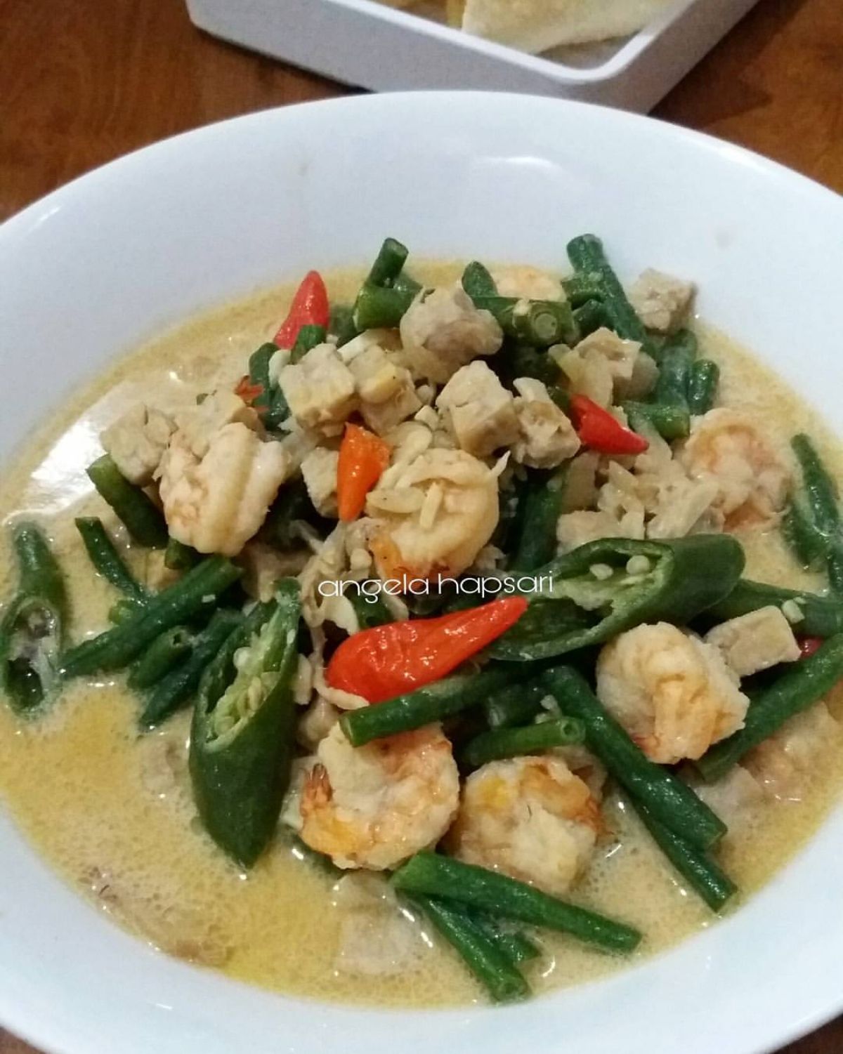 - Selanjutnya, masukkan santan, tempe, cabe rawit, dan semua bumbu lainnya. Masak hingga bumbu agak meresap dan santan mendidih.