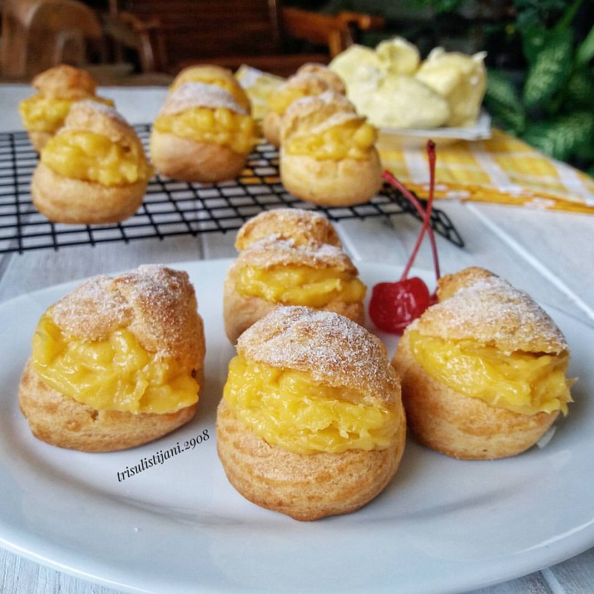 - Masukkan adonan ke dalam piping bag, kemudian semprotkan ke dalam loyang yang sudah diolesi. Panggang pada suhu 200 derajat selama 20 menit pertama, lalu turunkan suhu menjadi 180 derajat dan lanjutkan memanggang selama 20 menit hingga kulitnya kecoklatan dan mengembang dengan baik.