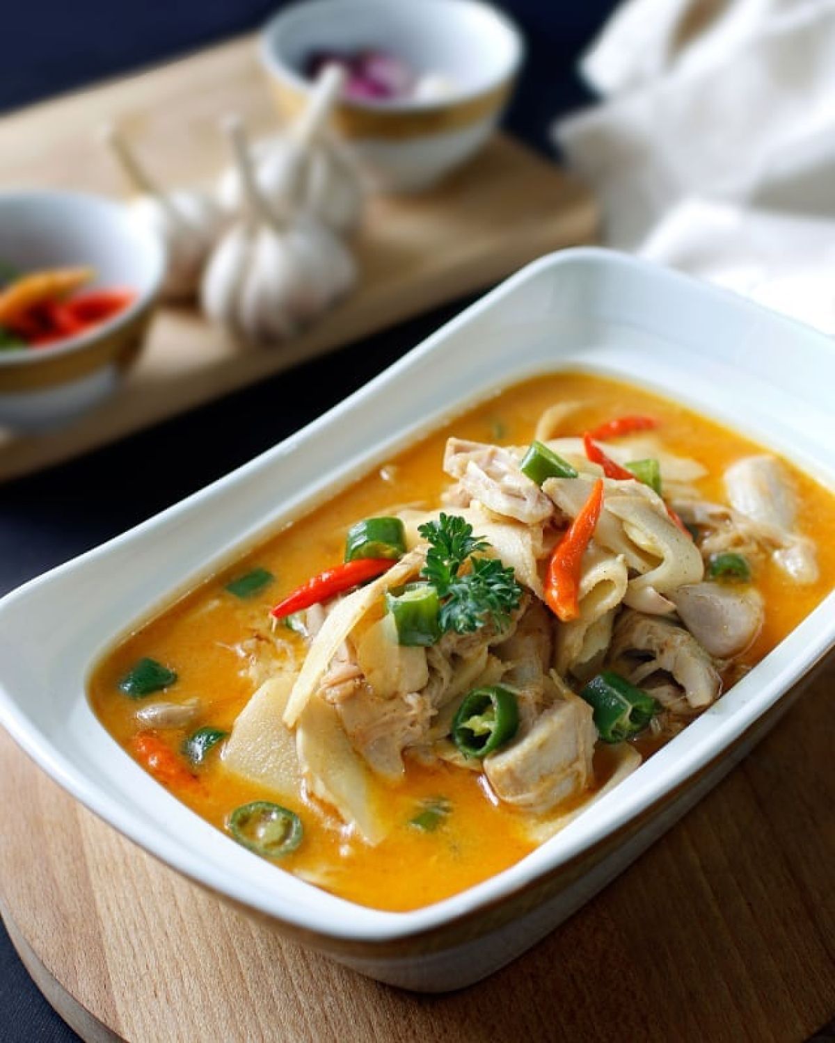 Lodeh Rebung Tewel adalah masakan khas Indonesia yang menggugah selera. Hidangan ini terdiri dari bahan utama rebung (bambu muda) dan tewel (nangka muda) yang dimasak dengan santan. Lodeh sangat populer di berbagai daerah di Indonesia dan sering disajikan saat acara keluarga maupun perayaan. Rasanya yang gurih dan segar membuatnya menjadi salah satu favorit banyak orang. Yuk, coba buat di rumah!
