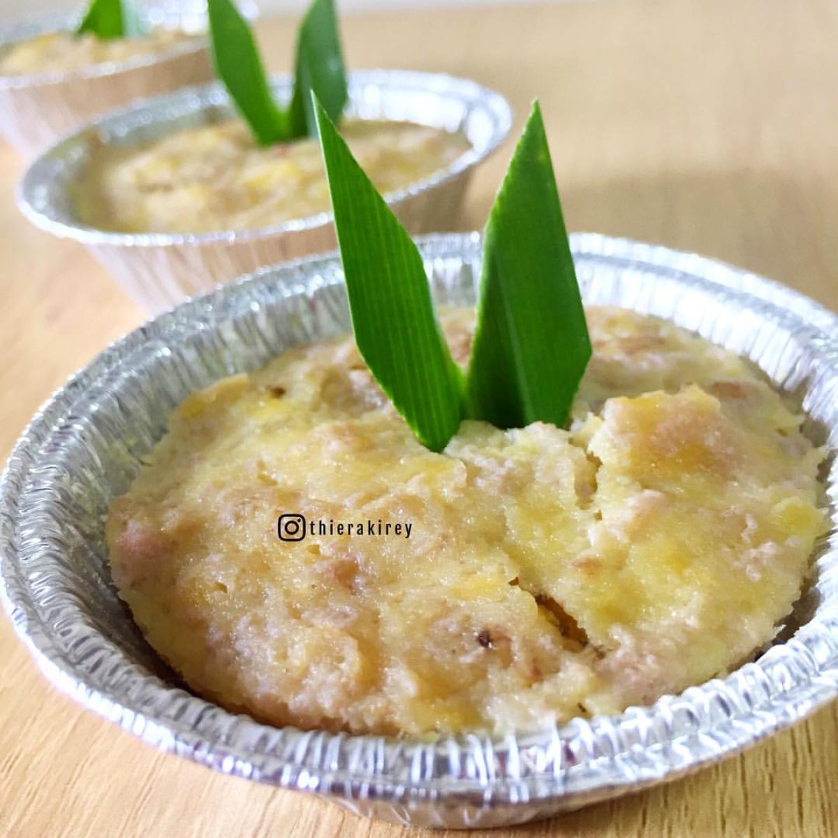 - Tuangkan adonan ke dalam wadah tahan panas atau jika kamu punya, bisa dibungkus dengan daun pisang.
