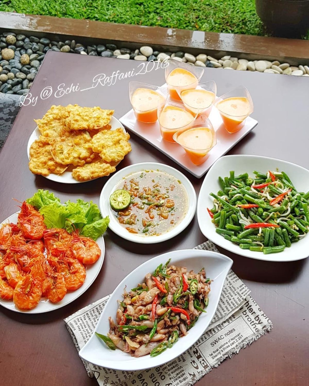 Bakwan jagung, yang populer sebagai camilan, biasanya dinikmati dengan sambal sebagai pelengkap. Puding mangga memberikan kesegaran dan manis pada hidangan pagi.