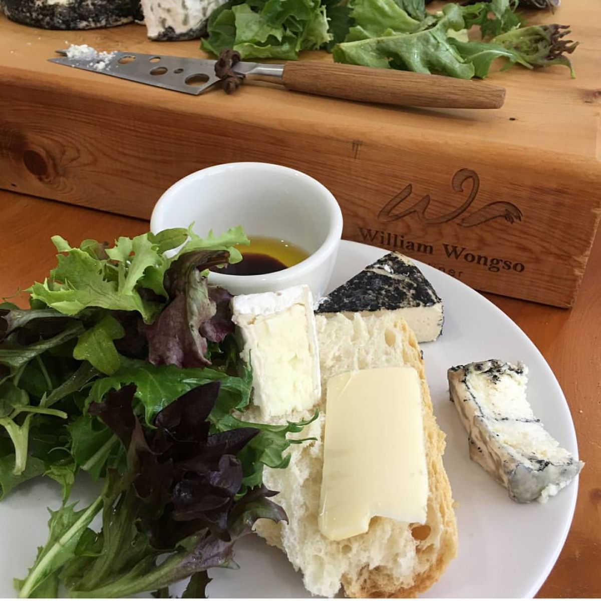 - Susun Keju: Setelah roti dipanggang, letakkan irisan keju mozzarella di salah satu sisi roti. Tambahkan keju camembert dan chevre di atasnya.