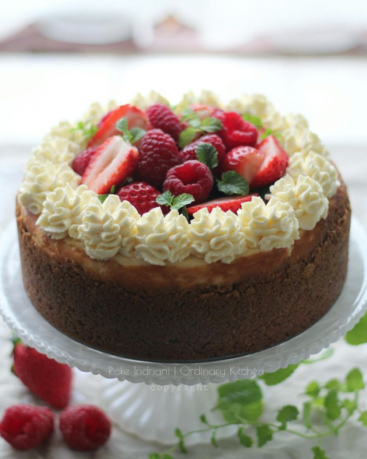 - Setelah cukup dingin, keluarkan cheesecake dari loyang dan beri topping sesuai selera. Selamat menikmati!