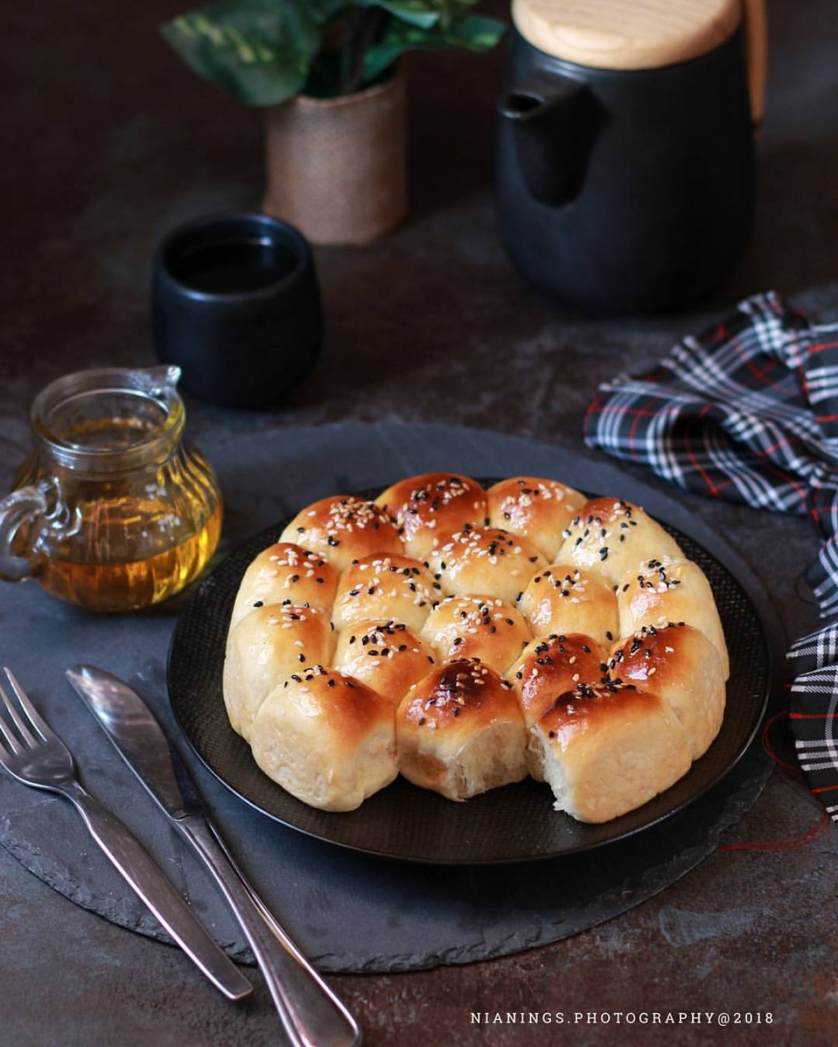 - Diamkan kembali selama kurang lebih 40 menit agar mengembang. Oleskan kuning telur di atasnya, lalu taburi wijen hitam dan putih. Panggang dalam oven dengan suhu 200°C selama 10-15 menit. Sesuaikan dengan karakter oven masing-masing.