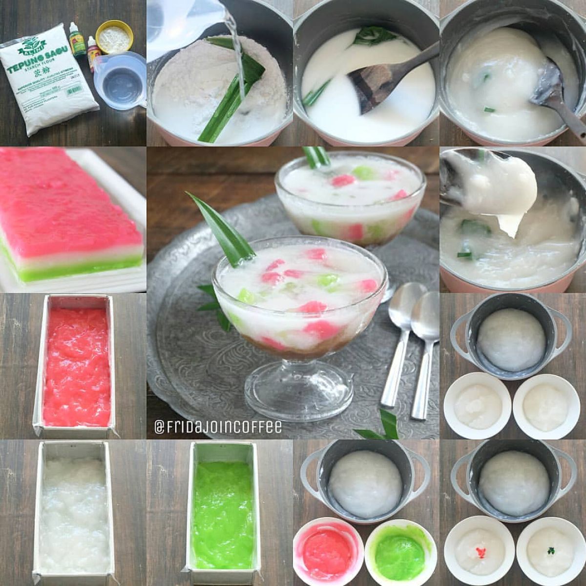 - Campurkan sagu aren, tepung beras, garam, air, dan daun pandan dalam sebuah wadah. Aduk hingga rata.