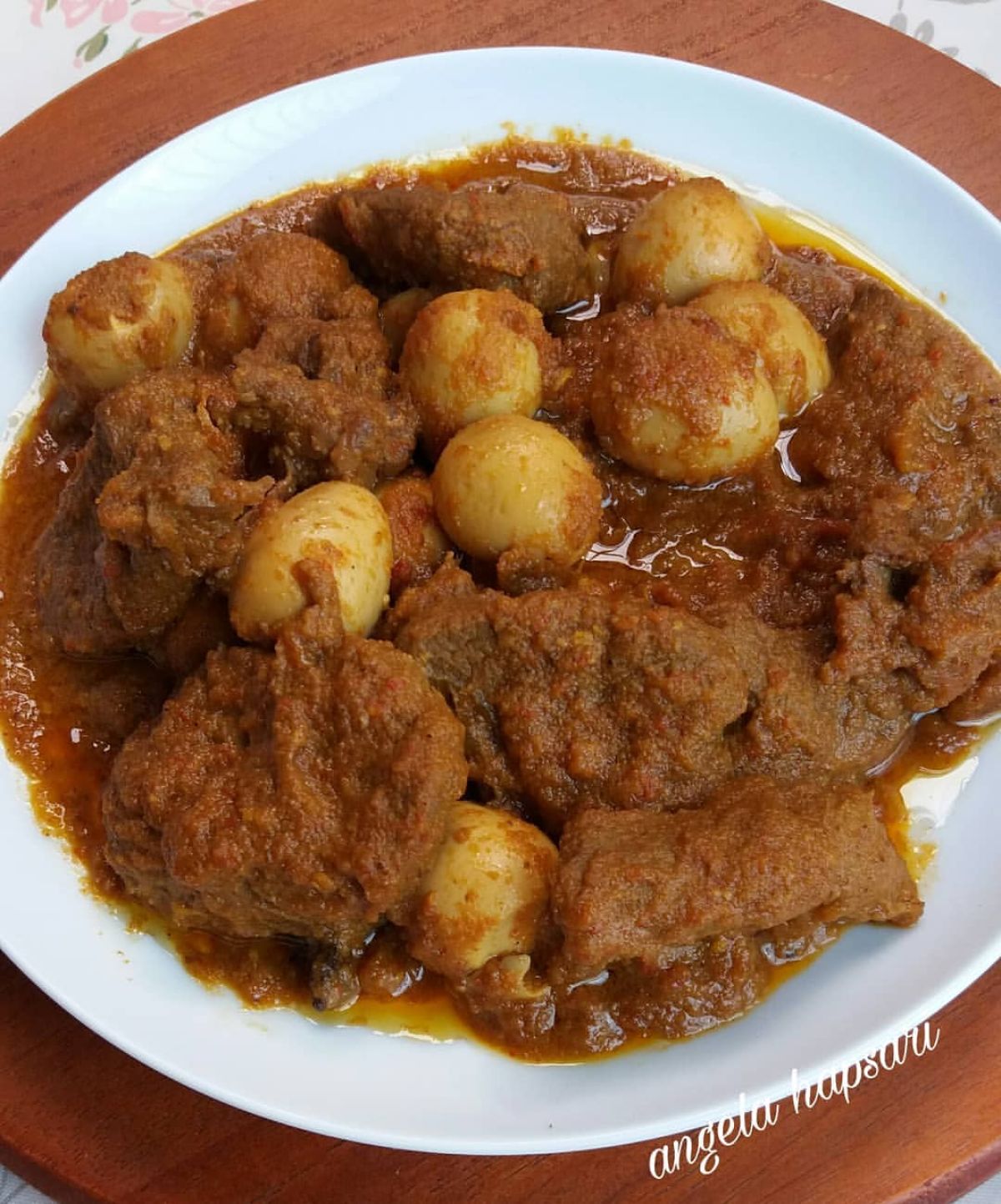 - Setelah daging empuk, tambahkan gula merah dan garam. Koreksi rasa. Angkat dan sajikan hangat.