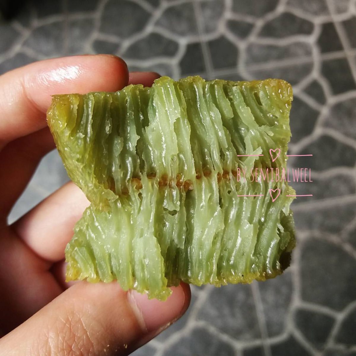 - Dalam wadah terpisah, campurkan sagu, terigu, kocokan telur, ½ sdt garam, 100 gr gula, ¼ sdt soda kue, dan pasta pandan. Aduk semua bahan hingga rata dan licin.