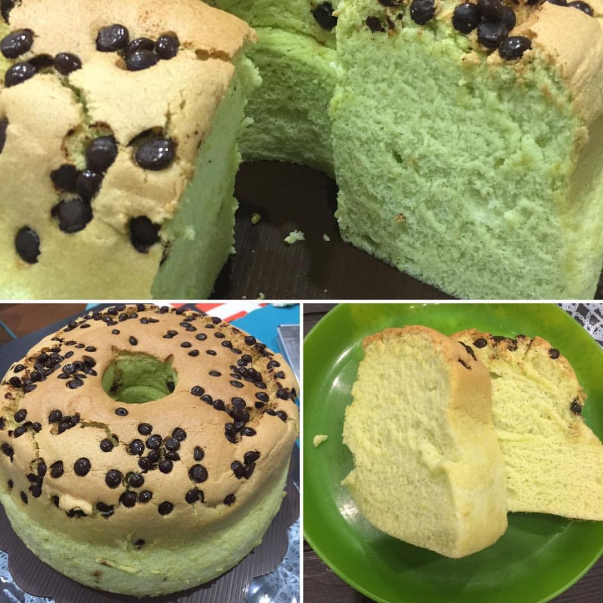 Pandan chiffon cake merupakan kue yang populer di Indonesia dan negara-negara Asia Tenggara lainnya. Kue ini menggabungkan tepung, telur, dan santan, serta menggunakan daun pandan sebagai pewarna dan penambah rasa alami. Pandan memberikan warna hijau yang cantik dan aroma segar pada kue. Selain itu, kue ini biasanya ditambah dengan berbagai topping atau isian sesuai selera, seperti choco chip, kelapa parut, atau selai.
