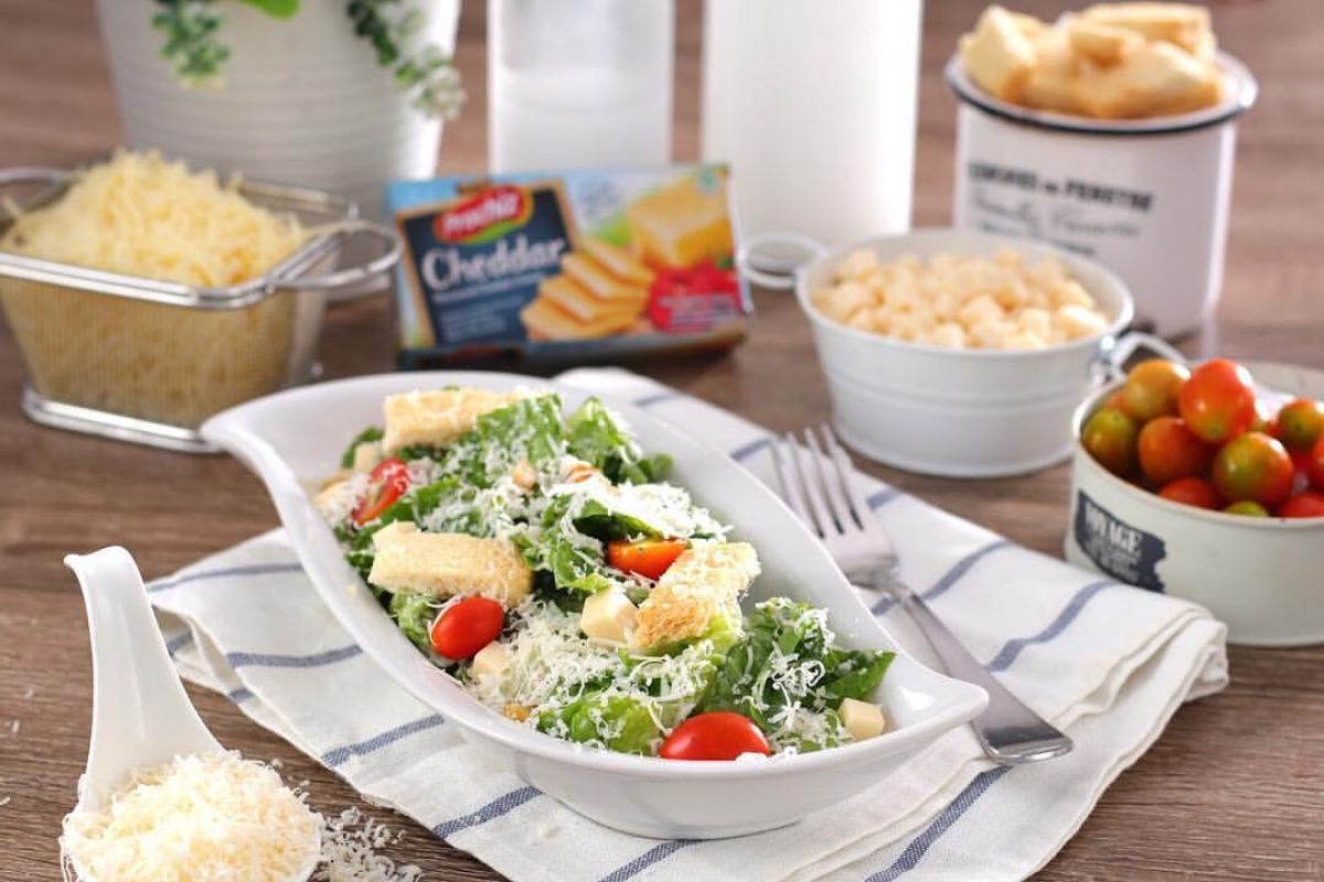 Selamat menikmati Cheese Caesar Salad yang lezat ini! Salad ini kaya akan serat dari sayuran dan protein dari ayam, sekaligus memberikan rasa gurih dari keju Prochiz. Cocok sebagai hidangan utama atau pendamping! Nikmati kelezatannya bersama teman-teman atau keluarga.