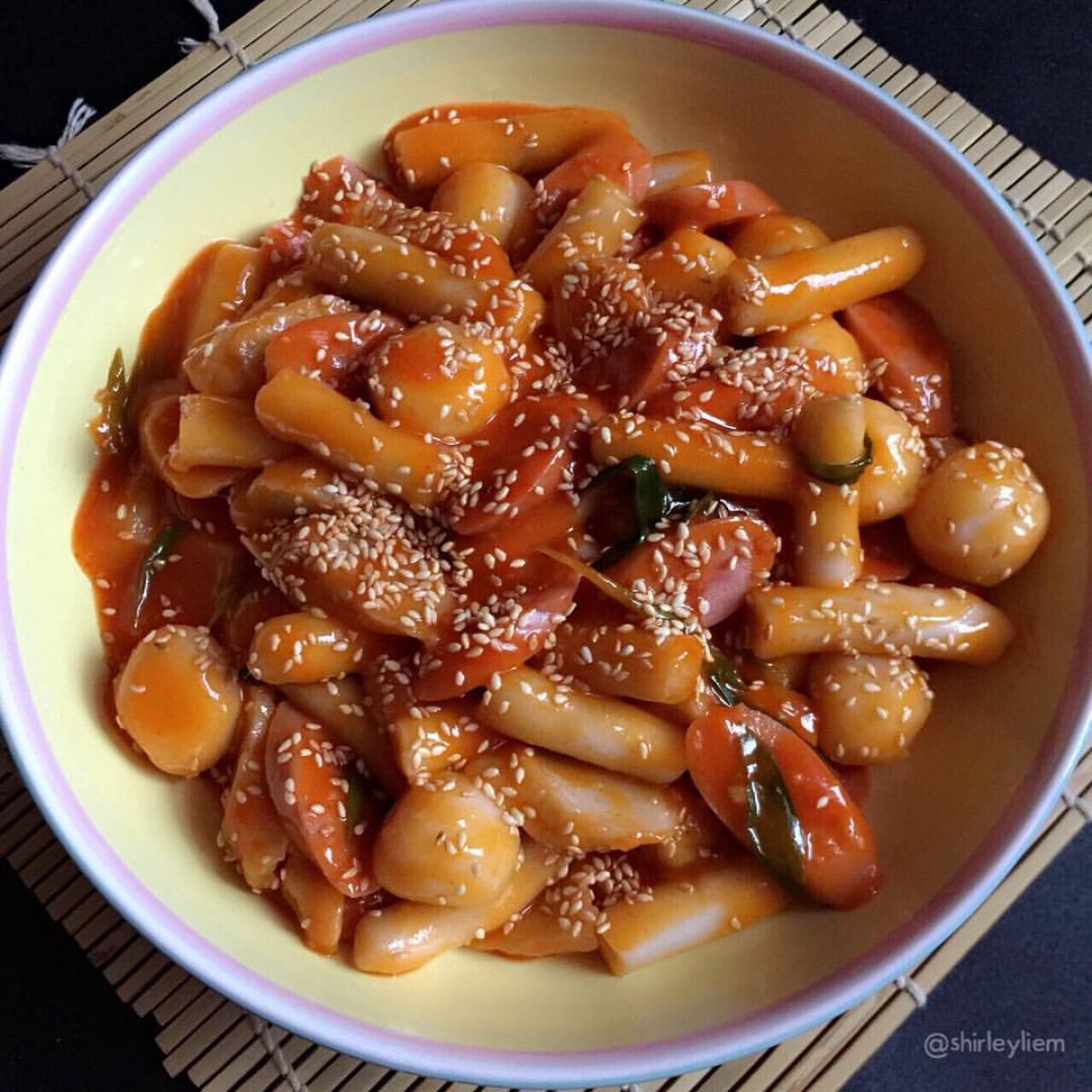 Angkat tteokbokki dari panci, sajikan dalam piring, taburi dengan biji wijen jika suka. Tteokbokki bisa dimakan selagi hangat. Nikmati!