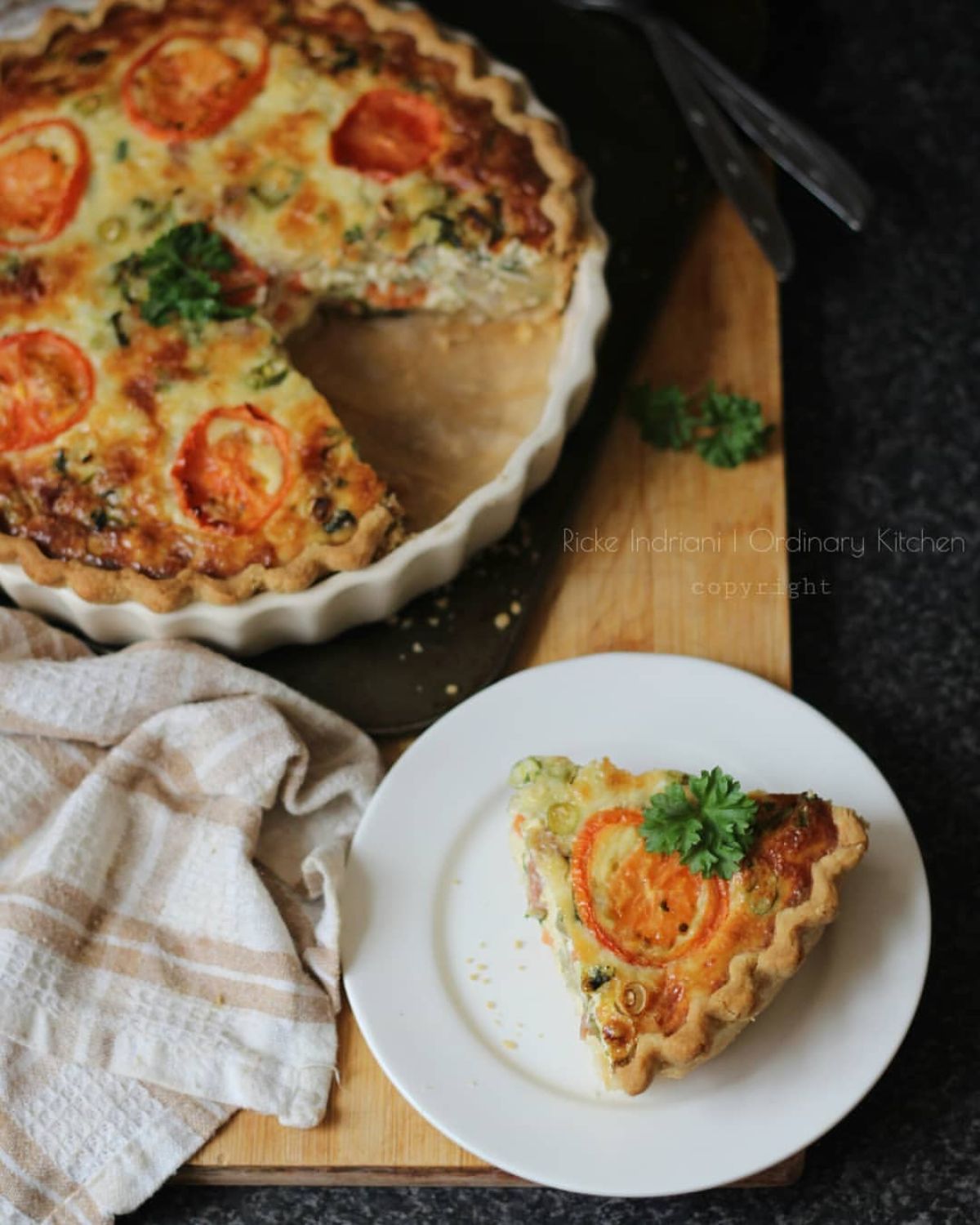 - Menyajikan Quiche: Setelah matang, keluarkan Quiche dari oven dan biarkan dingin sejenak. Potong menjadi beberapa bagian, dan sajikan hangat. Jangan lupa untuk menambahkan saus sambal jika suka, seperti yang biasa dilakukan.