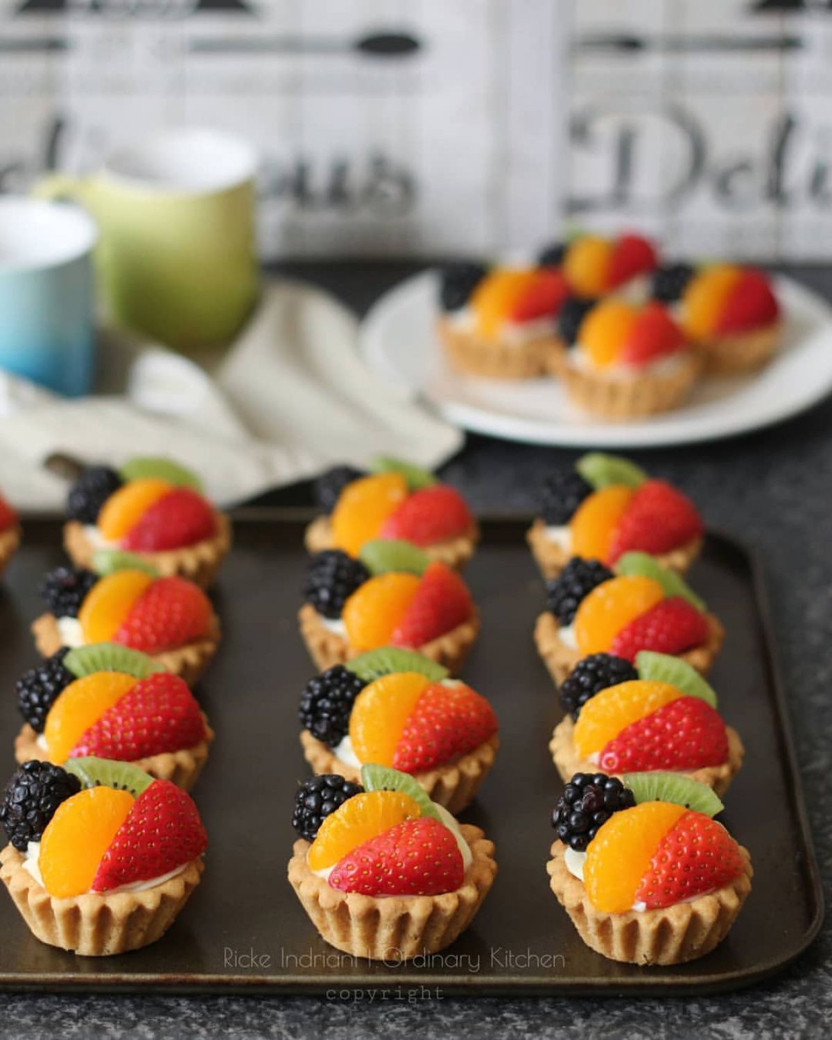 - Tata aneka buah di atasnya sesuai selera, dan tartlet pun siap disajikan!