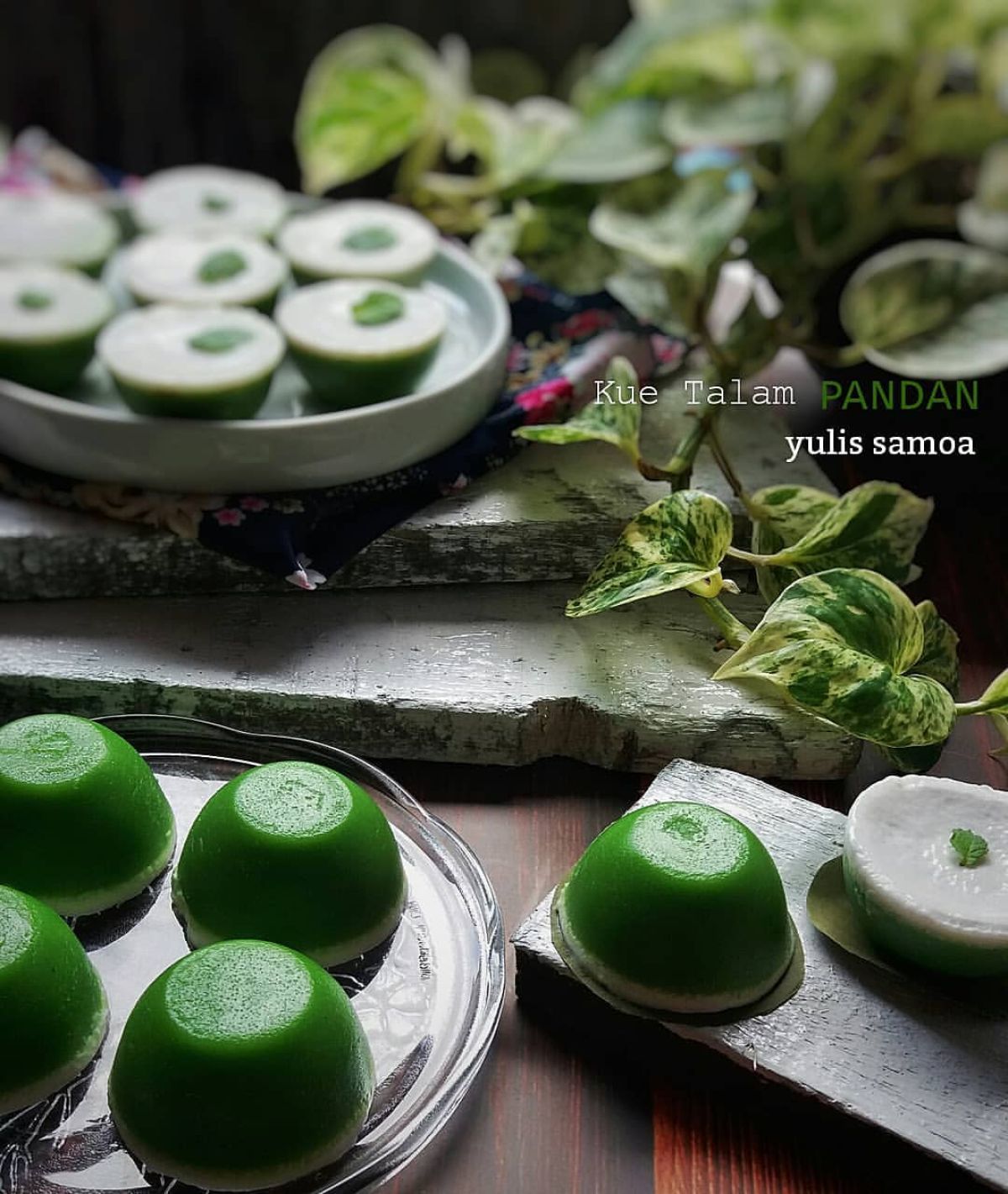 Kue Talam berasal dari Indonesia dan sering dijadikan makanan penutup atau camilan. Kue ini memiliki dua lapisan, yaitu lapisan hijau dari tepung beras yang dicampur dengan pandan dan santan, serta lapisan putih yang biasanya terbuat dari campuran tepung beras dan air. Pandan memberikan aroma harum yang khas dan warna hijau yang menarik. Kue ini sering disajikan dalam acara-acara khusus dan merupakan bagian dari kebudayaan makanan tradisional Indonesia.