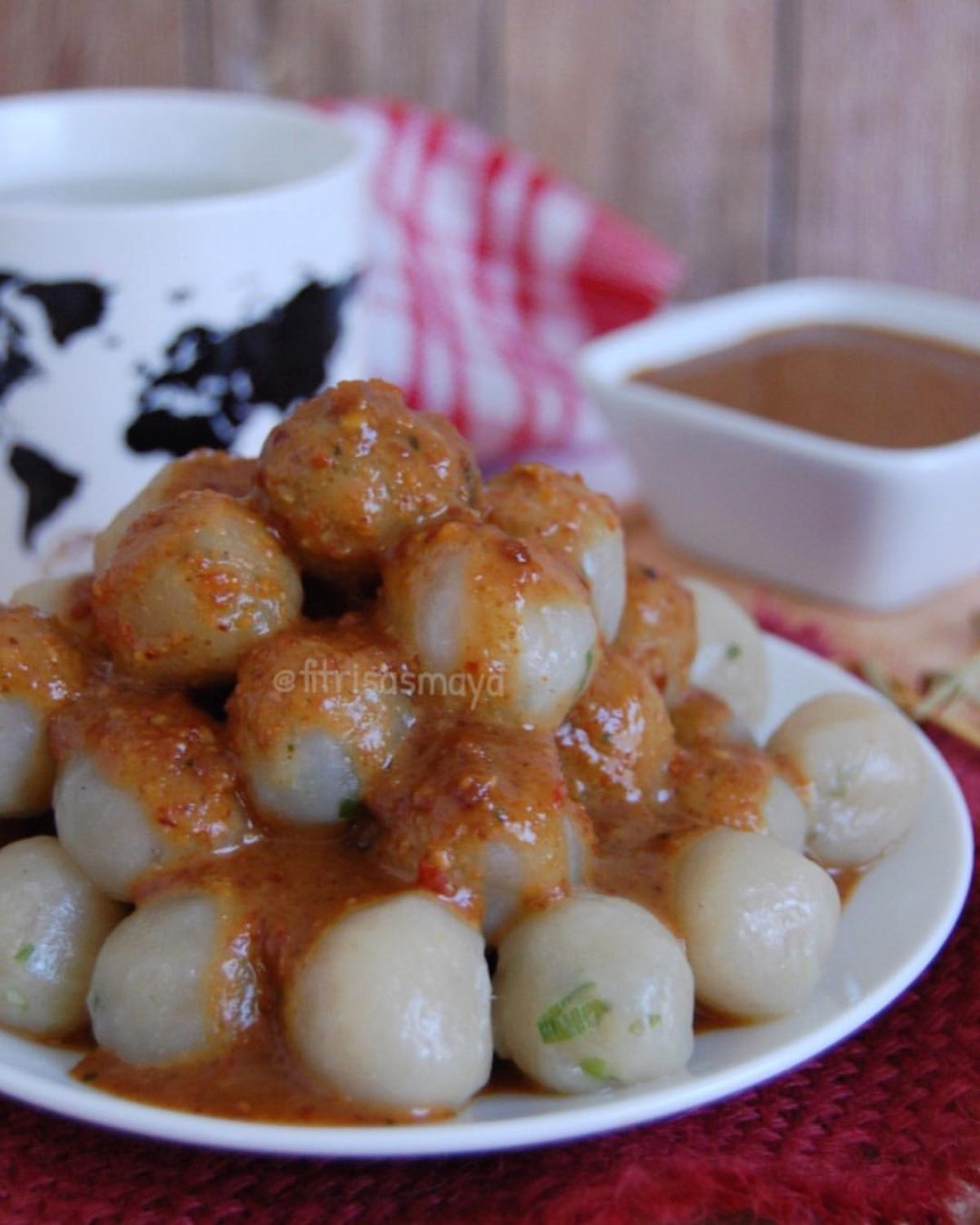 - Penyajian: Angkat cilok dan tiriskan. Tata cilok di piring dan siram dengan saus kacang yang telah dibuat. Jika kamu lebih suka, bisa mengganti saus kacang dengan campuran saus sambal dan kecap.