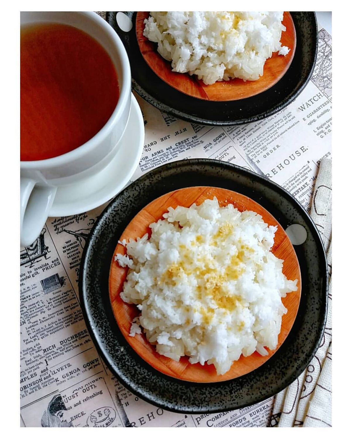 4. Menyajikan: Setelah ketan matang, angkat dan letakkan di atas piring. Taburi dengan kelapa parut, lalu taburkan bubuk kedelai di atasnya. Ketan ini paling enak disantap selagi hangat!