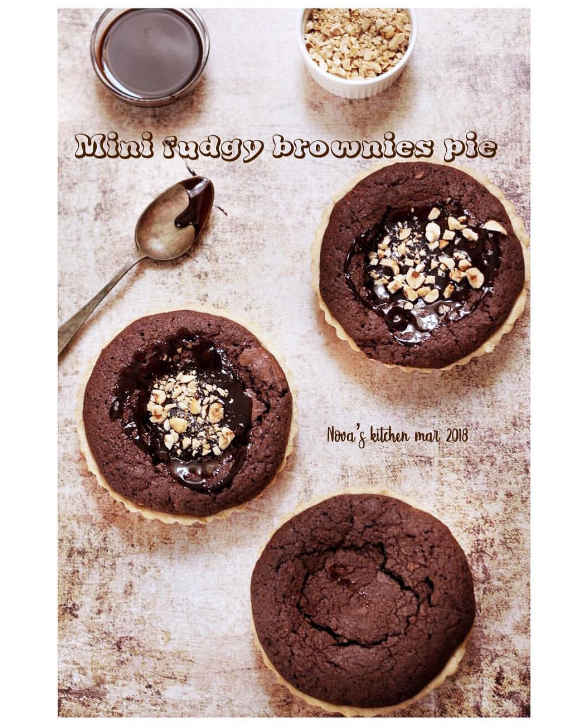 Panaskan oven hingga suhu 180°C. Setelah itu, keluarkan pie crust dari kulkas dan gilas adonan dengan ketebalan sekitar 0,5 cm. Letakkan adonan di loyang pie mini dan ratakan. Tuang adonan brownies di atas pie crust. Panggang dalam oven selama 20-25 menit. Waktu memanggang bisa berbeda tergantung oven masing-masing, jadi perhatikan baik-baik!