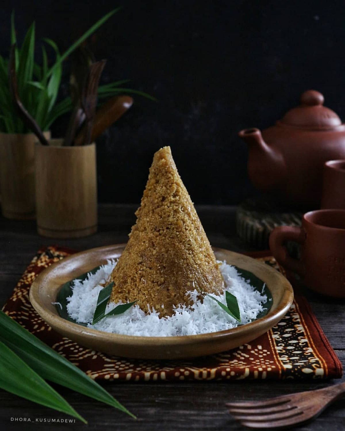 - Kukus selama sekitar 45 menit. Untuk hasil terbaik, adonan yang tidak dicetak memberi hasil yang lebih mengembang. Setelah matang, angkat dan sajikan dengan kelapa parut yang sudah dikukus dengan sedikit garam.
