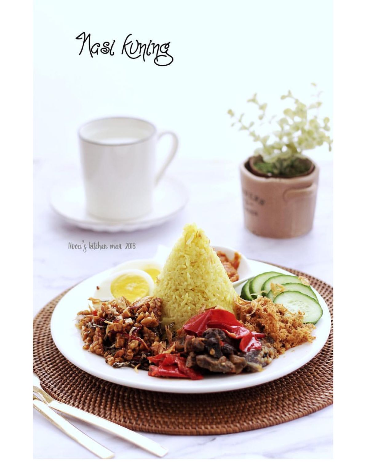 Berikut adalah bahan-bahan dan langkah-langkah untuk membuat Nasi Kuning Ala Mak Nova!