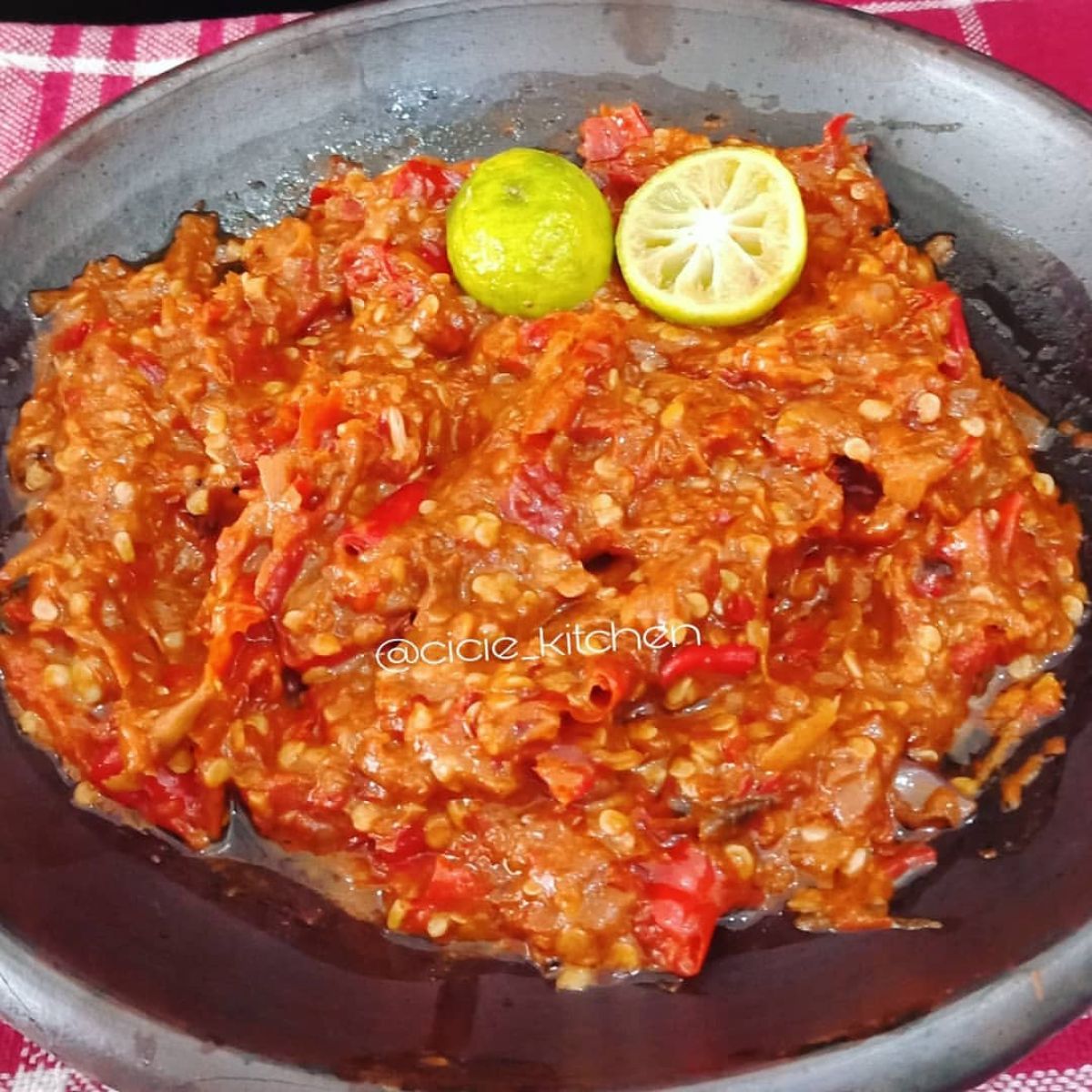 - Terakhir, tuangkan air perasan jeruk limo untuk memberi kesegaran pada sambal. Aduk rata dan sajikan di wadah.