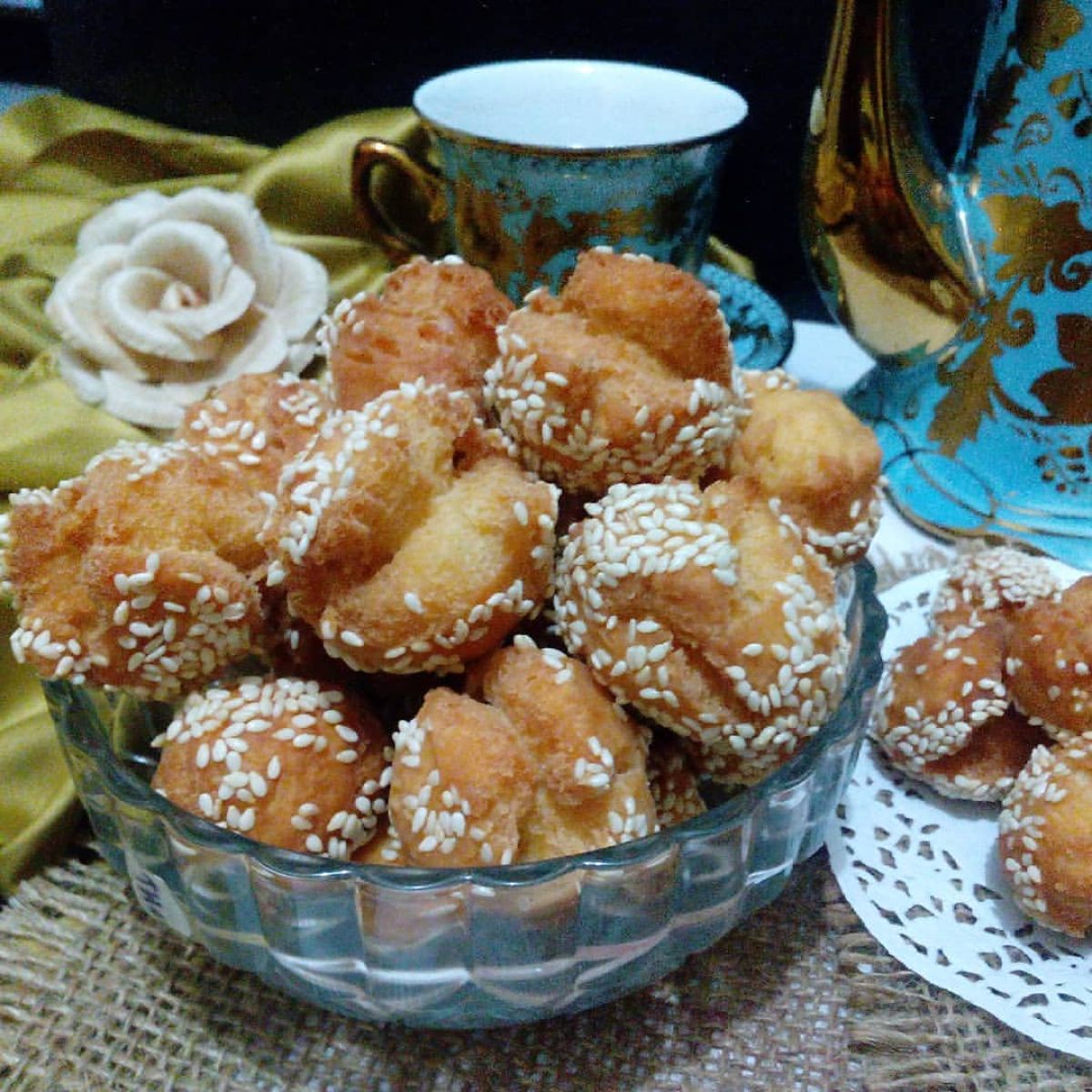 - Setelah kalis, ambil sedikit adonan dan bentuk menjadi bulat-bulat kecil. Jangan lupa untuk membaluri adonan bulat itu dengan wijen putih agar lebih gurih!