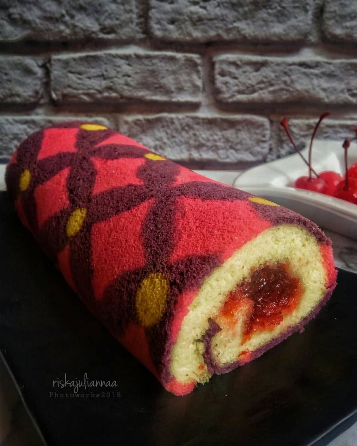 Bolu gulung adalah kue yang terkenal di Indonesia dan sering disajikan pada berbagai acara, mulai dari ulang tahun hingga perayaan hari besar. Kue ini memiliki tekstur yang lembut karena penggunaan teknik menggulung, yang memberikan pengalaman unik saat menyantapnya. Motif yang indah di permukaan bolu juga menjadi daya tarik tersendiri, memungkinkan para pembuatnya untuk mengekspresikan kreativitas. Tradisionalnya, isi bolu gulung menggunakan butter cream, tetapi penggunaan selai seperti strawberry memberikan rasa asam-manis yang segar dan ceria pada setiap gigitan.