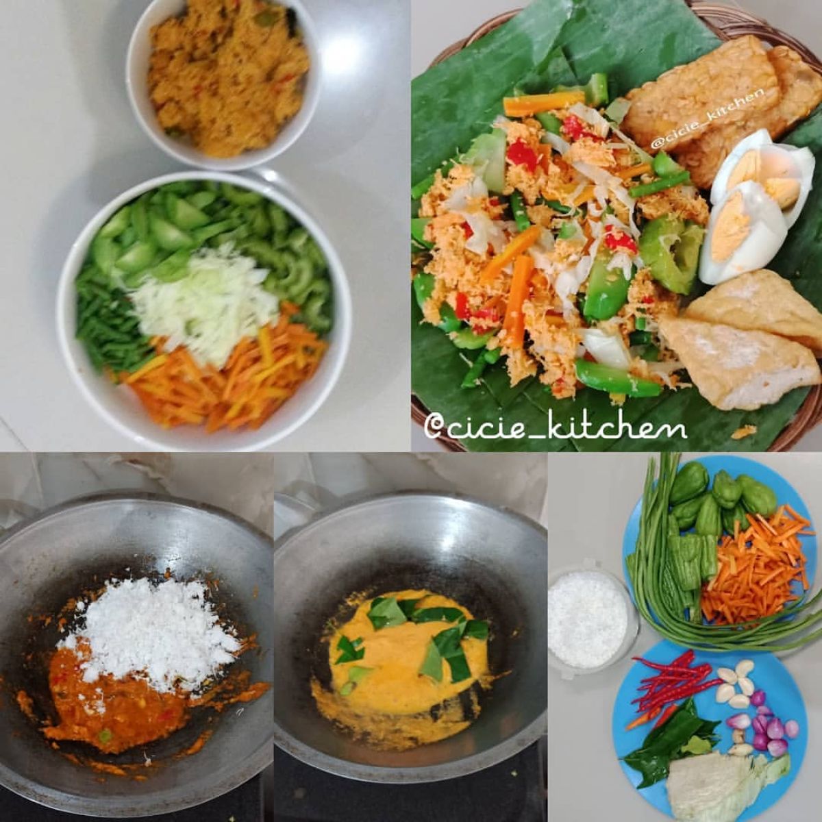 - Setelah semua matang, sajikan kelapa parut dengan sayuran, tempe, tahu, dan telur rebus. Tada! Urapan siap dinikmati!