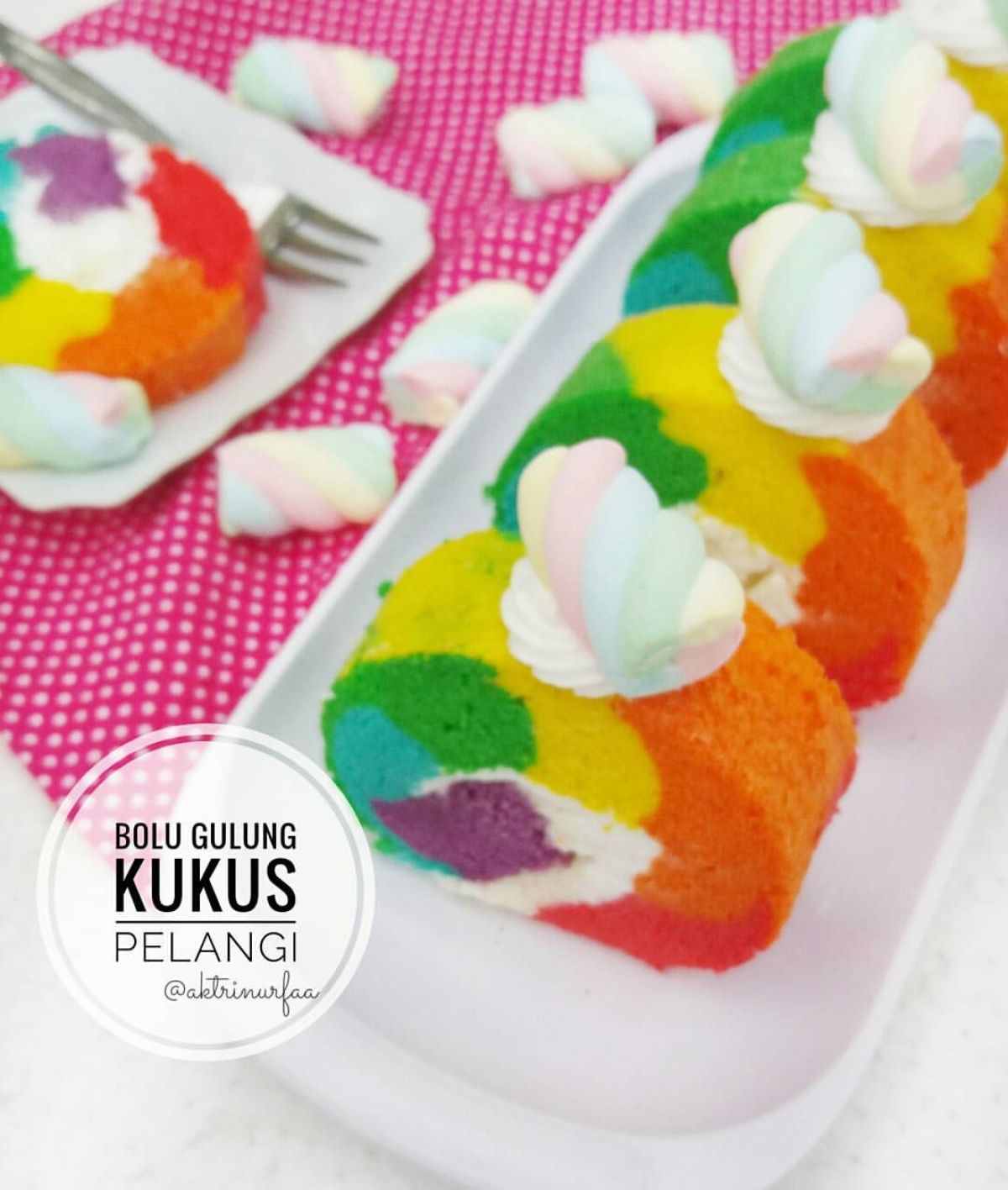 Bolu gulung kukus pelangi adalah salah satu kue yang menarik dan lezat. Kue ini dikenal dengan warna-warninya yang cerah dan teknik pembuatannya yang unik. Bolu ini biasanya disajikan pada acara spesial dan menjadi favorit banyak orang, terutama anak-anak. Kue ini populer di Indonesia dan sering dijadikan hidangan dalam perayaan atau acara keluarga. Selain terlihat cantik, bolu ini juga memiliki rasa yang nikmat.