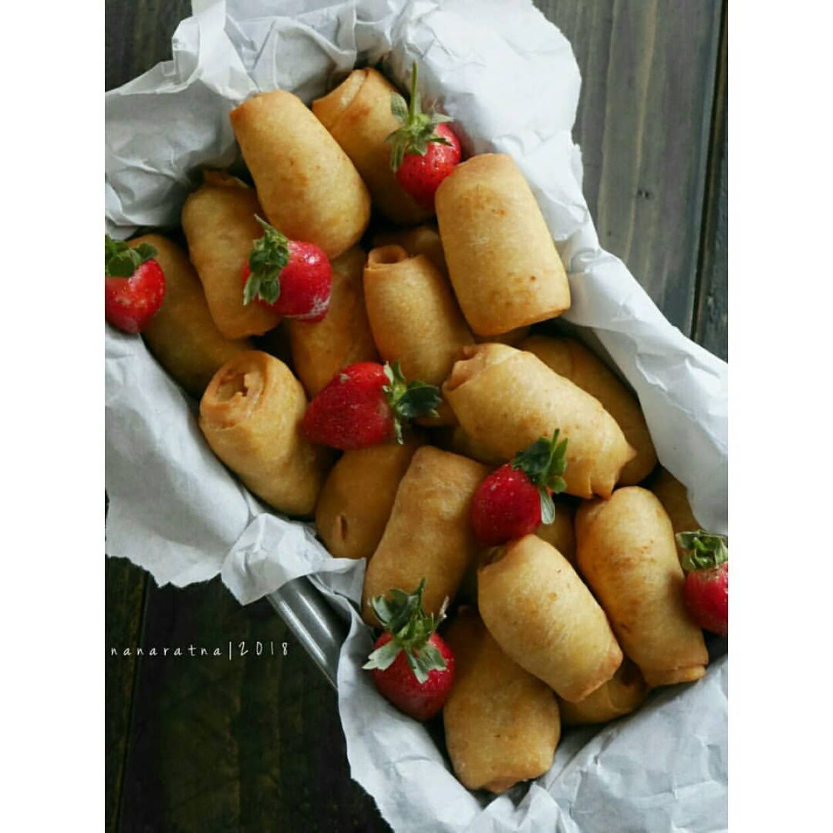- Pipihkan setiap adonan yang telah dibagi. Taruh potongan pisang di atasnya. Kemudian, gulung adonan yang sudah dipipihkan sehingga menutupi pisang sepenuhnya.