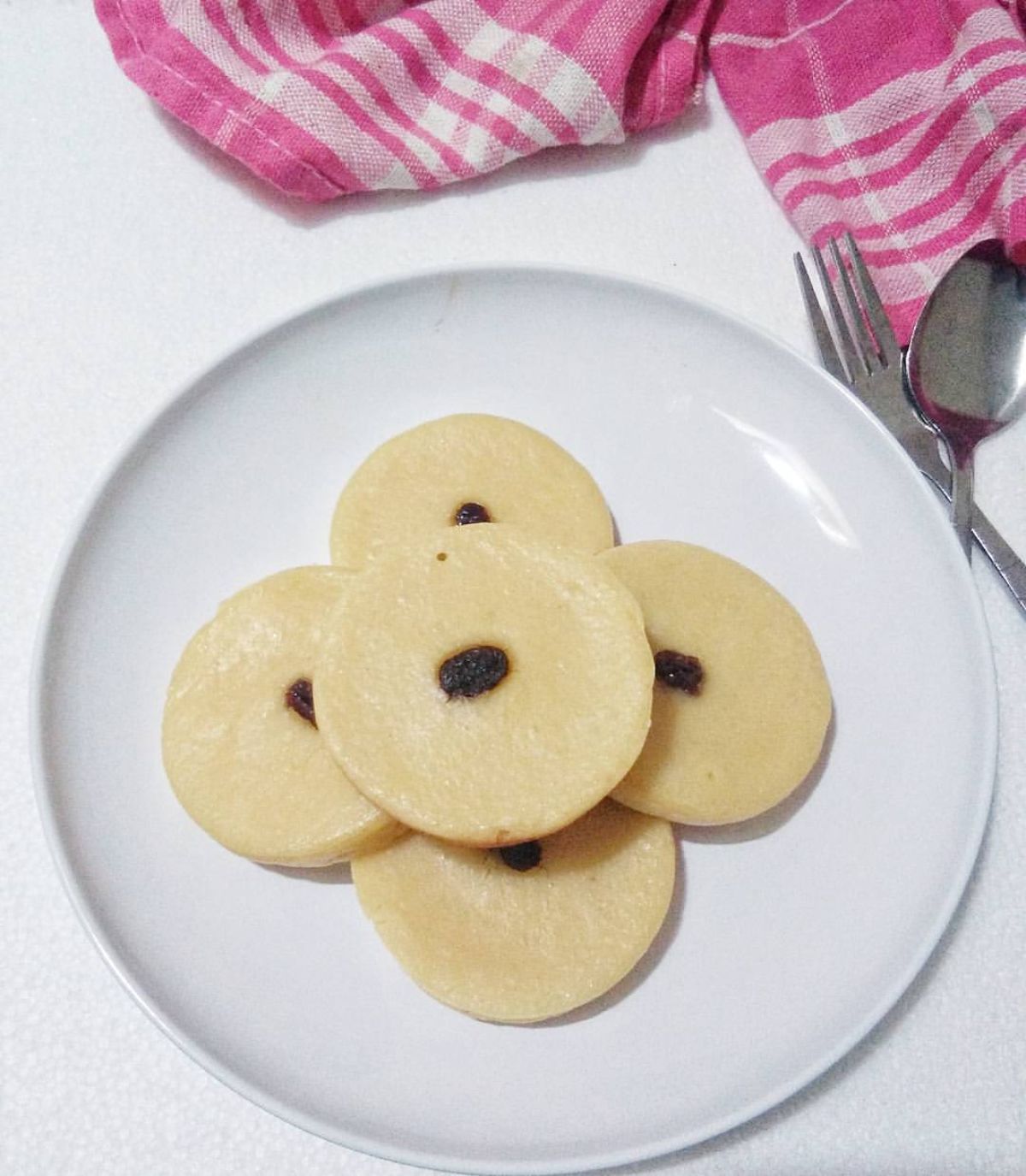 - Masak hingga kue setengah matang. Setelah itu, beri kismis di atasnya, tutup lagi, dan masak hingga matang. Pastikan gula larut sempurna agar adonan tidak berongga.