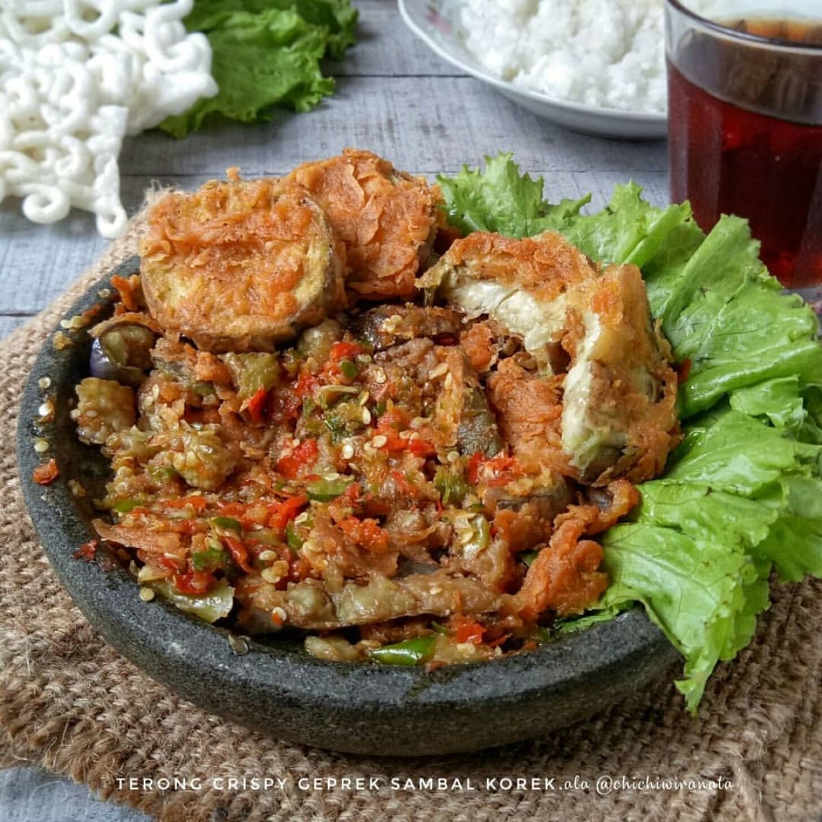 - Terakhir, geprek terong dan campurkan ke dalam sambal. Aduk rata hingga semua bahan tercampur sempurna.