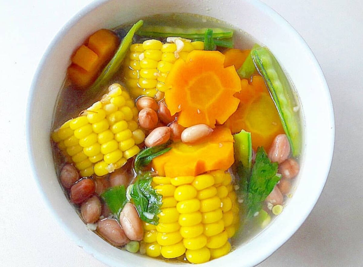 3. Masak Sup: Dalam panci, masukkan kacang tanah rebus, wortel, kacang kapri, dan jagung. Tambahkan air secukupnya. Biarkan mendidih. Sesudahnya, tambahkan garam, merica, dan kaldu jamur bubuk. Aduk rata dan masak hingga semua sayuran empuk, sekitar 15 menit.