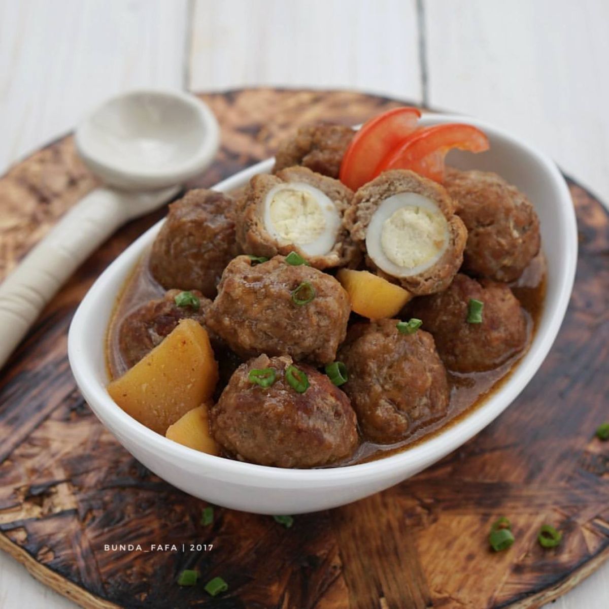 - Angkat semur dari kompor dan sajikan hangat dengan taburan daun bawang di atasnya.