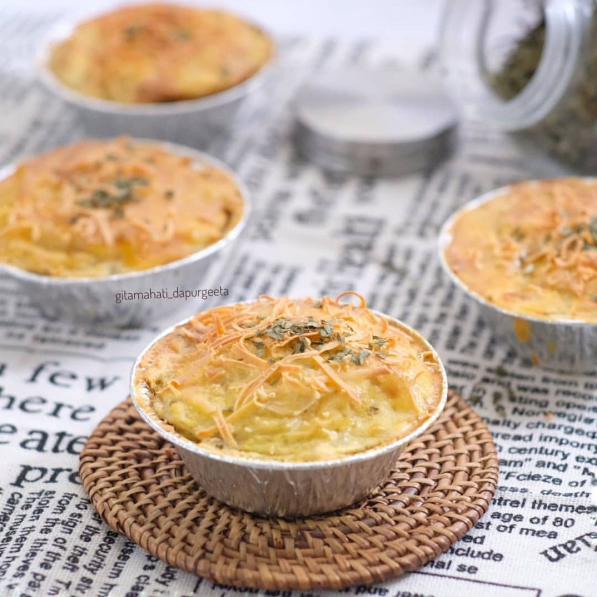 - Olesi atasnya dengan kuning telur, taburi dengan keju parut dan parsley.