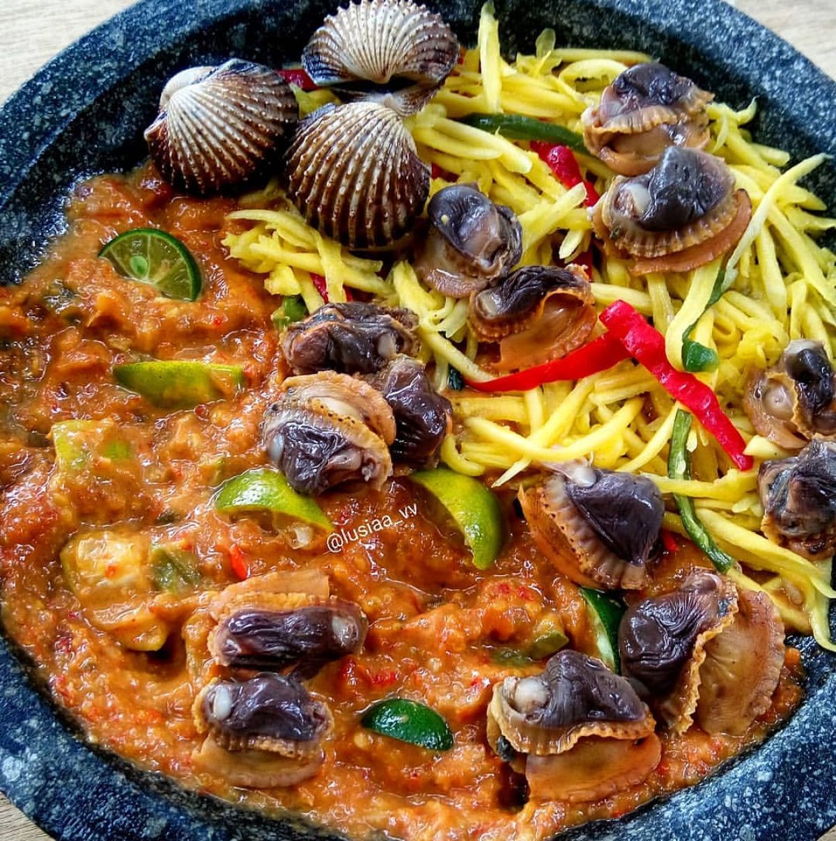 - Sajikan sambal mangga kerang dengan kerang rebus sebagai pelengkap. Siap disantap!