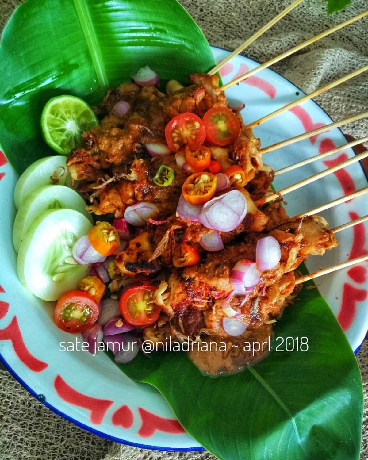 - Sajikan sate jamur dengan irisan cabai rawit dan bawang merah mentah untuk memberikan rasa segar.