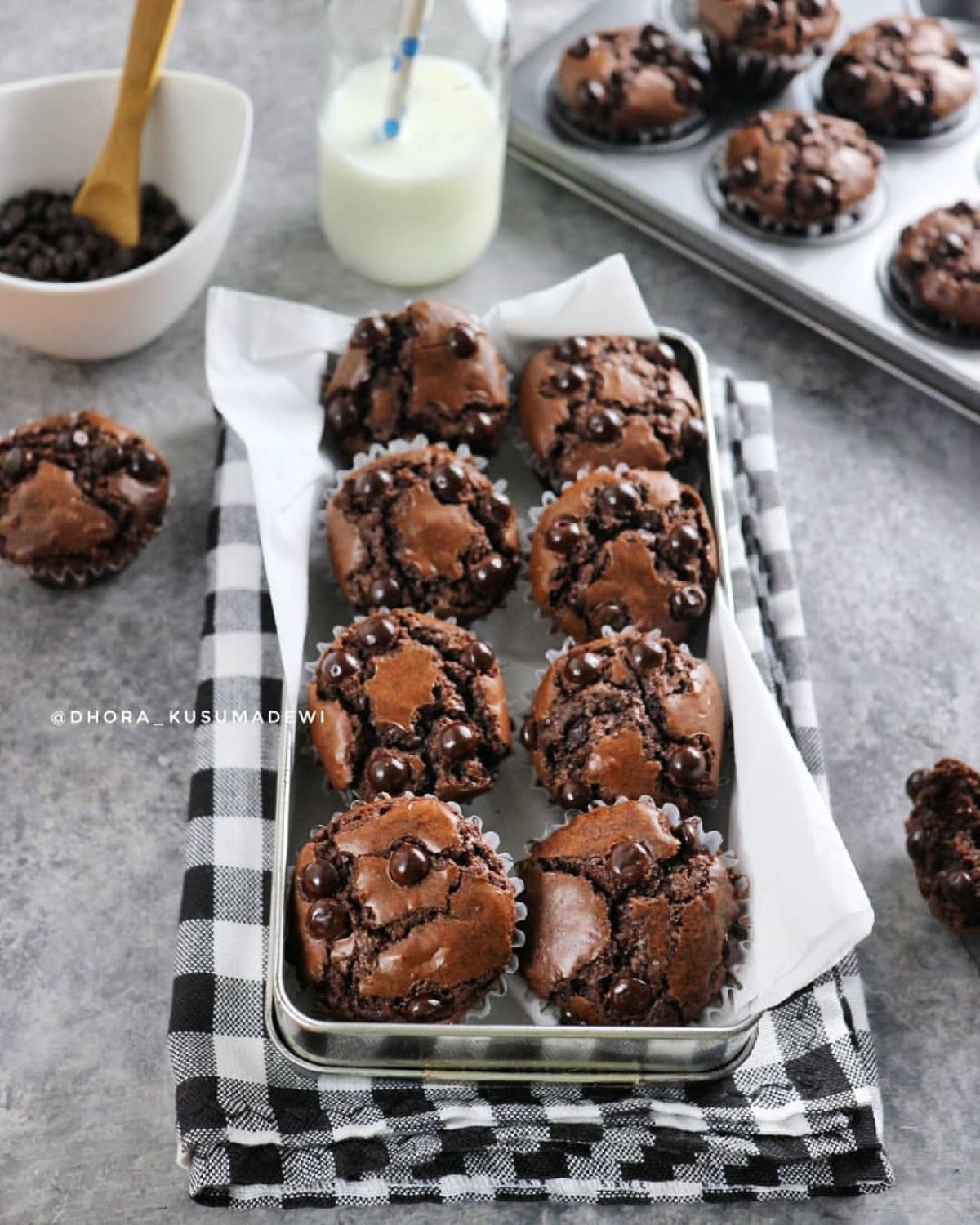 - Tuang adonan ke dalam paper cup. Panggang di dalam oven selama kurang lebih 25 menit. Pastikan oven disetel dengan api atas bawah dan gunakan rak tengah. Setiap oven berbeda, jadi perhatikan proses pemanggangan. Jangan sampai terlalu lama, nanti brownies menjadi keras!