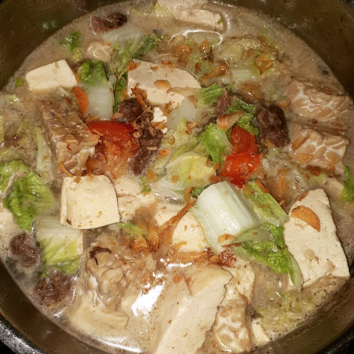 Estimasi Kalori: Hidangan ini mengandung sekitar 1200 kalori untuk total porsi, jika dibagi menjadi empat porsi, maka setiap porsi mengandung sekitar 300 kalori. Itu juga termasuk sumber protein yang baik dari tahu, tempe, dan daging sapi.