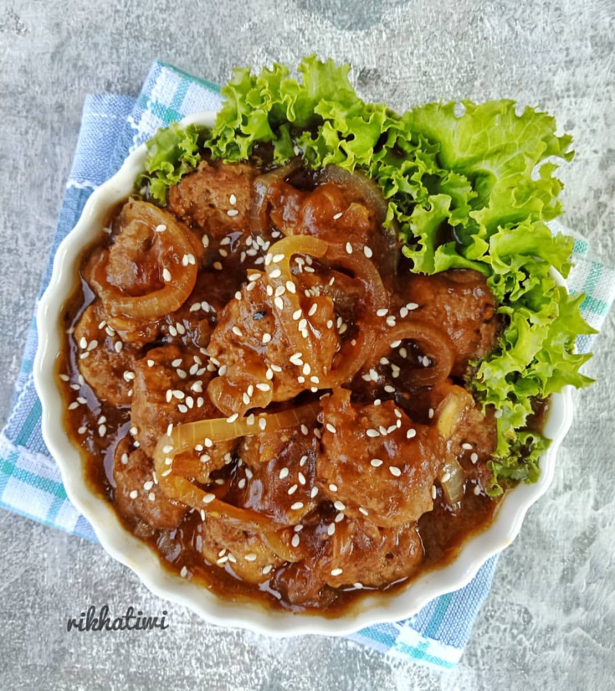 Hidangan ini sangat cocok dinikmati bersama nasi hangat. Makanan ini tidak hanya lezat tetapi juga kaya akan gizi. Satu porsi bola-bola daging saus bistik diperkirakan mengandung sekitar 350 kalori, jadi pastikan untuk menikmati setiap gigitan dengan bahagia!