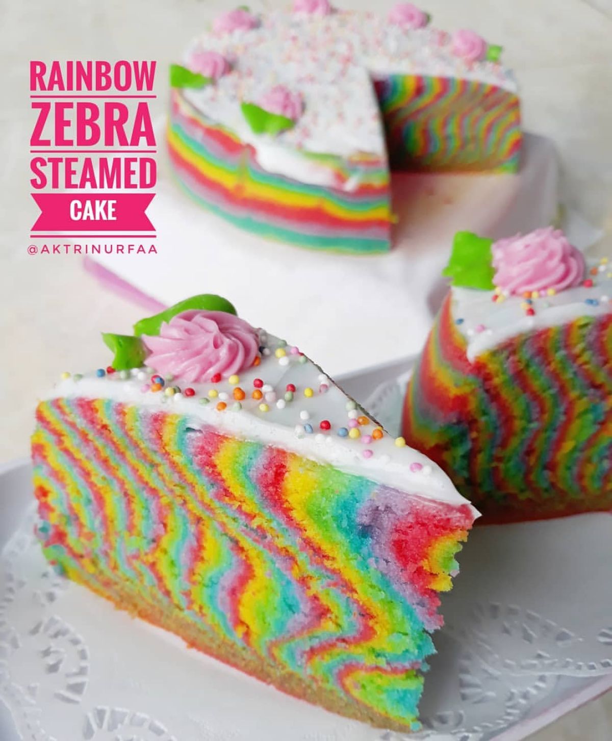 Kue Kukus Zebra Pelangi adalah salah satu kue tradisional yang populer di Indonesia. Kue ini dikenal dengan tampilan warnanya yang cerah dan menarik. Cocok untuk disajikan saat acara keluarga atau sebagai camilan di rumah. Kue ini berasal dari resep kue kukus yang lebih klasik dan hiasan warna-warni ini membuatnya semakin istimewa!