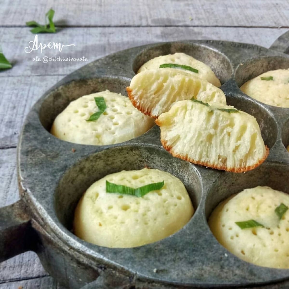 - Tutup cetakan dan masak dengan api sedang. Tunggu hingga matang. Biasanya, apem akan terlihat mengembang dan berwarna kecokelatan.