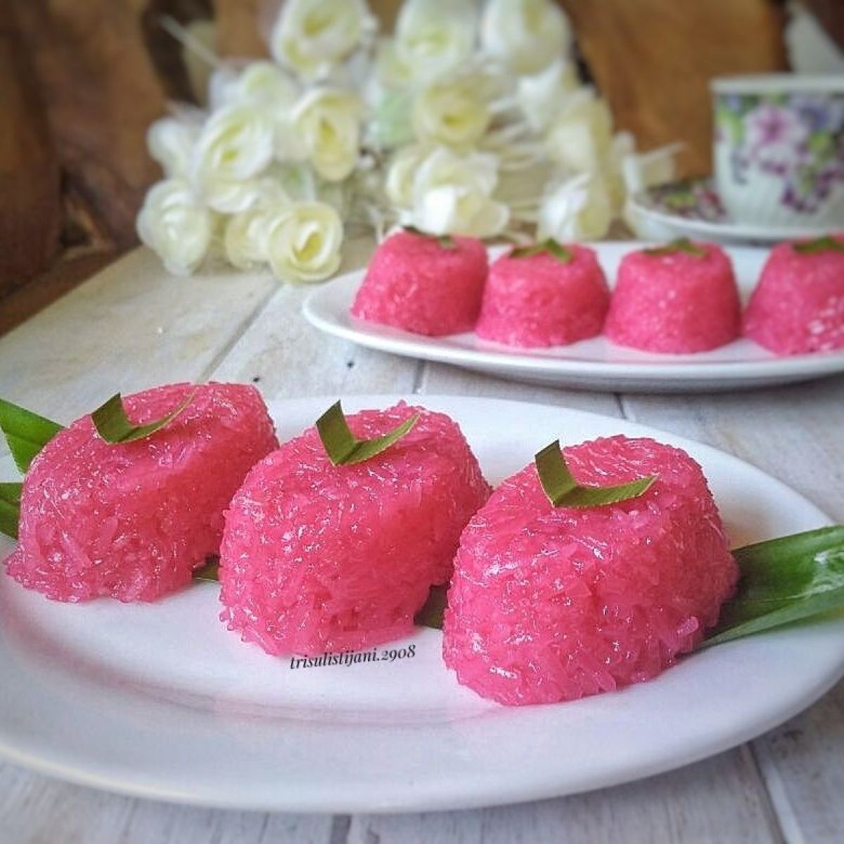 - Cuci bersih beras ketan, lalu rendam selama 2 jam di dalam air. Tambahkan sedikit pewarna merah muda untuk mendapatkan warna yang cantik.