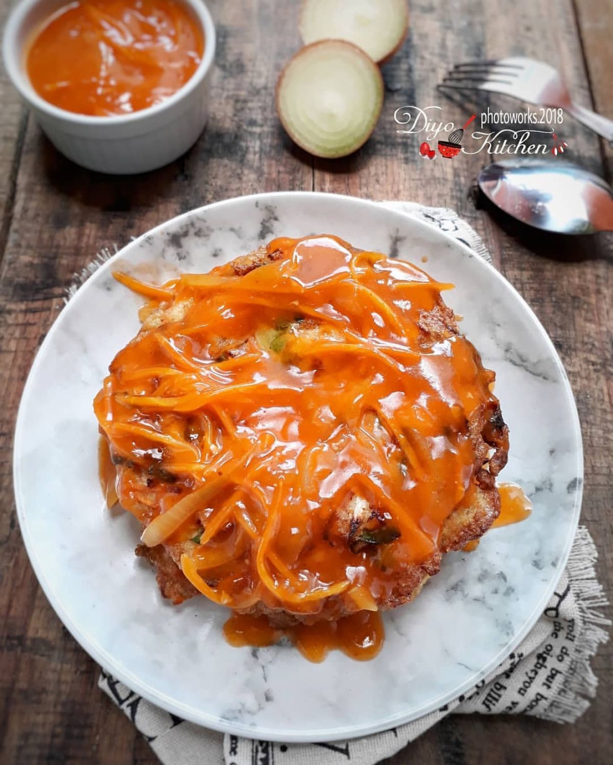 - Tata fuyunghai dalam piring saji dan siram dengan saus yang sudah dibuat. Fuyunghai siap disajikan!
