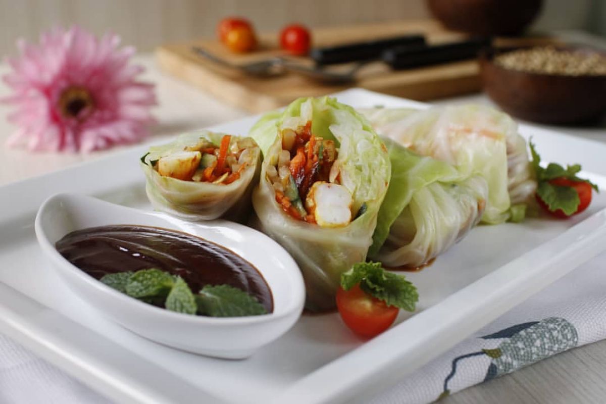 - Sajikan kol gulung dalam piring, dengan saus di sampingnya untuk dicelupkan.