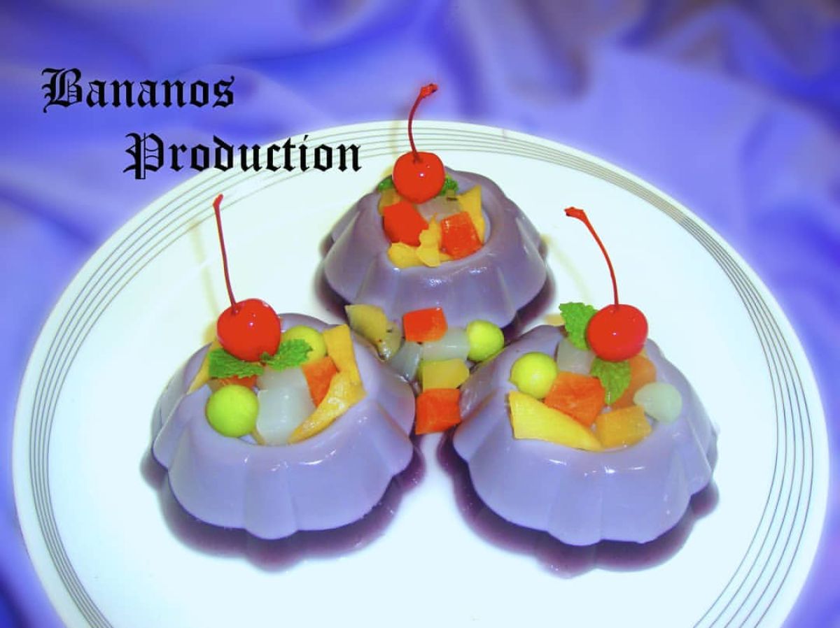 - Setelah dingin, keluarkan agar-agar dari cetakan dan siram dengan cocktail buah. Simpan dalam kulkas hingga siap disajikan.
