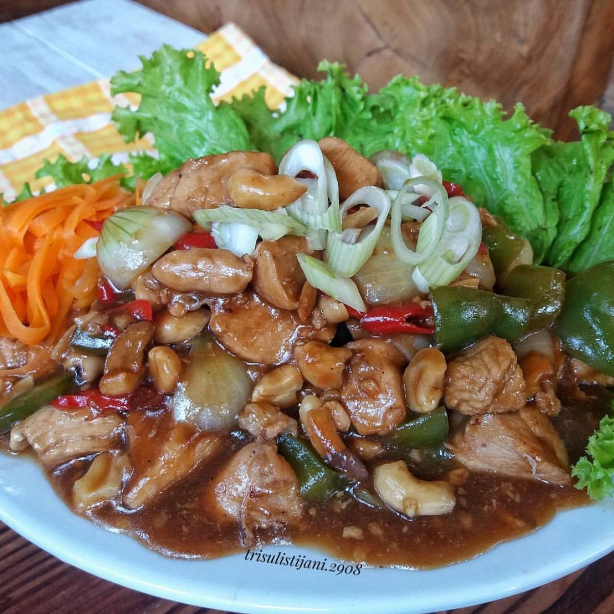 - Terakhir, masukkan ayam dan kacang mede ke dalam saus. Aduk sampai semua bahan tercampur rata, masak hingga saus mengental, kemudian angkat.