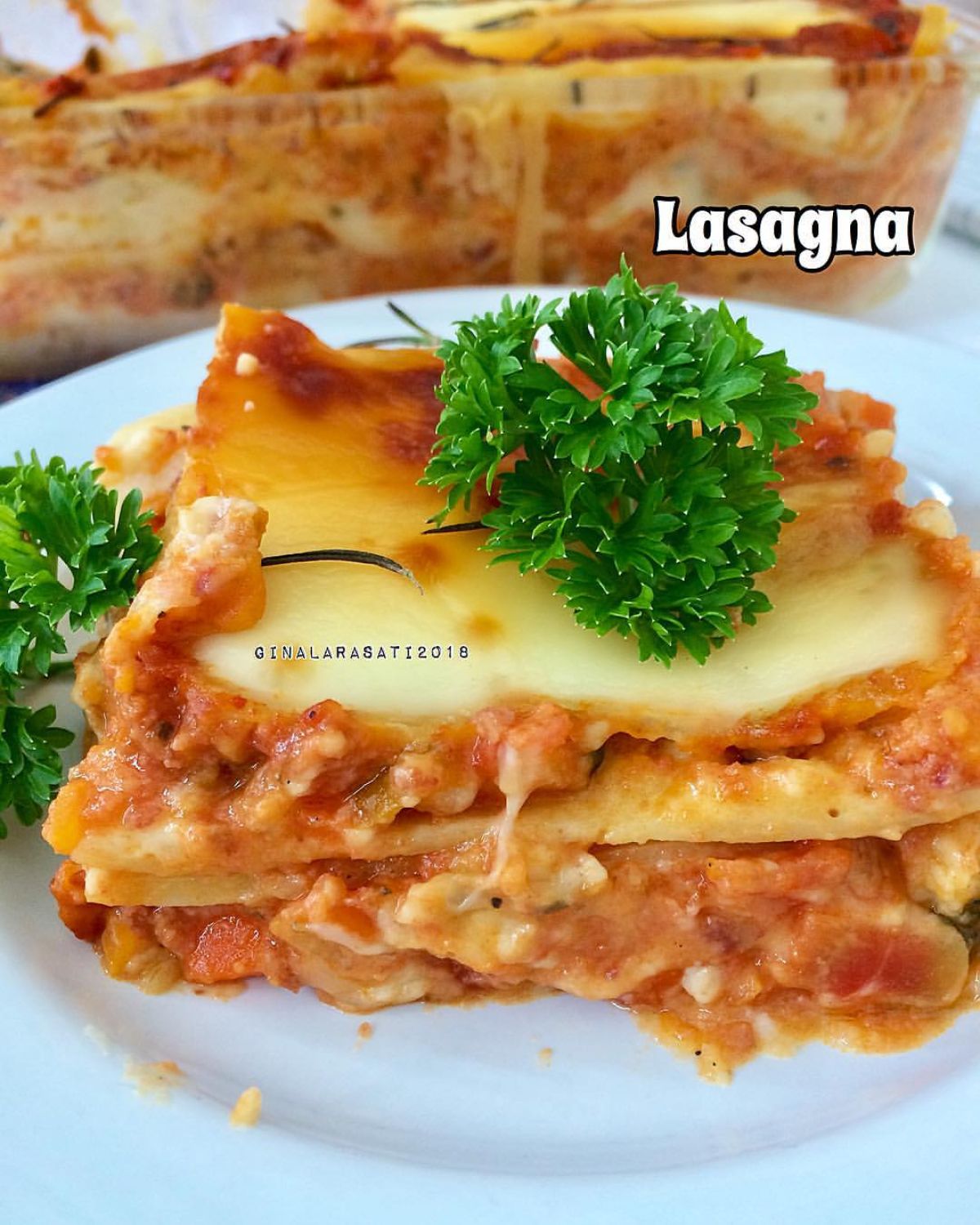 5. Memanggang Lasagna: Panggang dalam oven dengan suhu 180 derajat Celsius sampai matang dan keju di atasnya meleleh dan berwarna keemasan.
