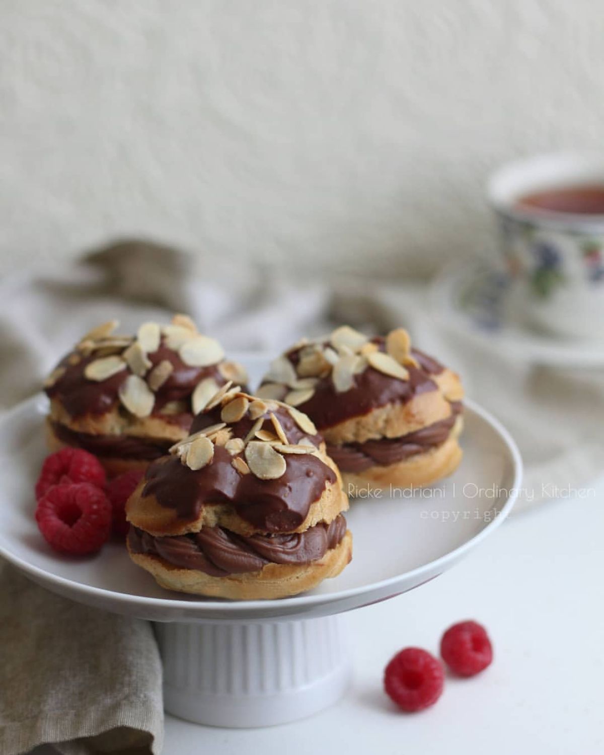Isi kulit choux dengan pastry cream yang sudah dibuat. Celupkan permukaan kue ke dalam topping cokelat, lalu taburi dengan almond flakes yang sudah disangrai. Voila, Kue Soes Cokelat Ganda siap disajikan!