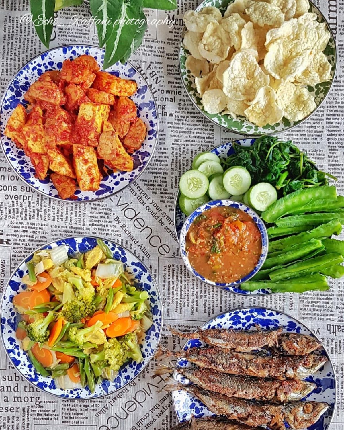 - 1/2 piring sayuran (wortel, kacang polong, dan kol) - sekitar 50 kalori